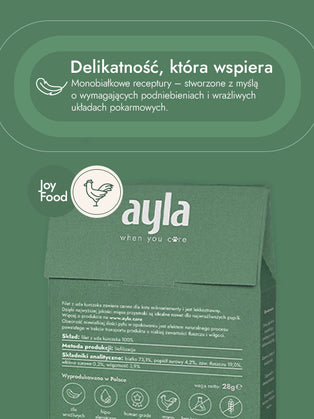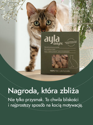 To połączenie wspiera prawidłową pracę układu nerwowego, krwionośnego i odpornościowego, a także dba o dobrą kondycję skóry i sierści. Filet z uda kurczaka to smakowity przysmak i jednocześnie naturalne wsparcie w codziennej diecie. Jest odpowiedni również dla kociąt.
